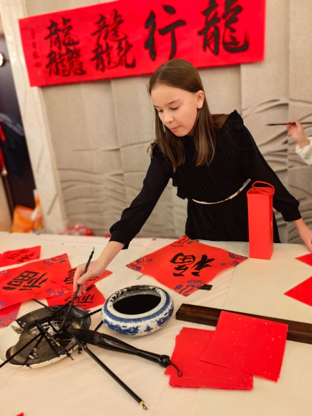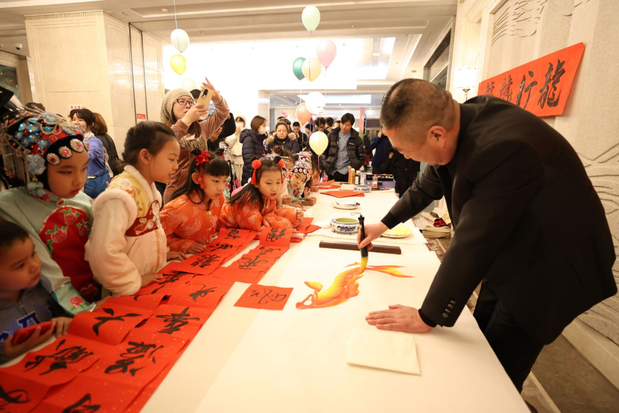 “福”字是中国文化中非常重要的一个字,它有着丰富的寓意,代表着吉祥和福气,更象征着家庭的和谐和幸福。本次活动特别邀请到中国著名画家李浩林先生,现场挥毫泼墨展示精湛的书法艺术、手绘金鱼,并亲手教孩子们写下中国的“福”字,祈福新年吉祥如意,给新的一年带来更多好运、更大福气!