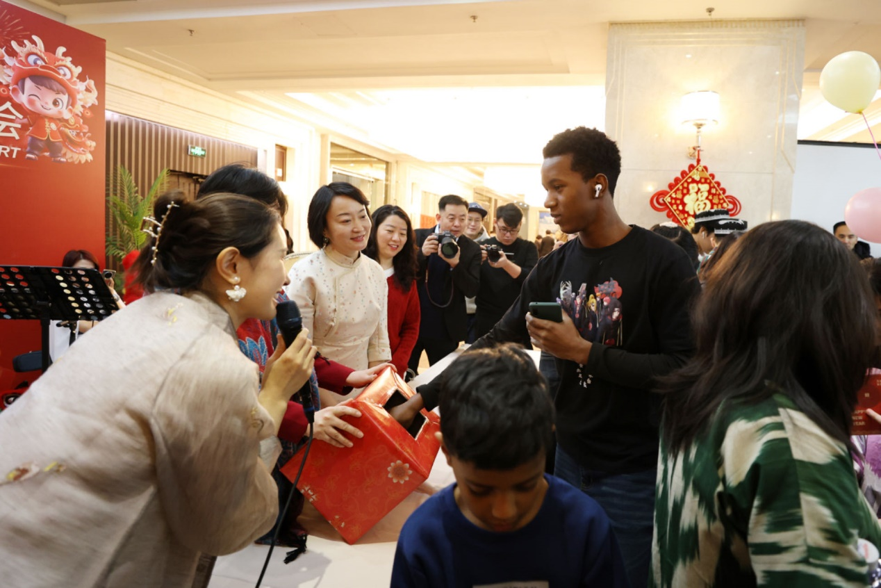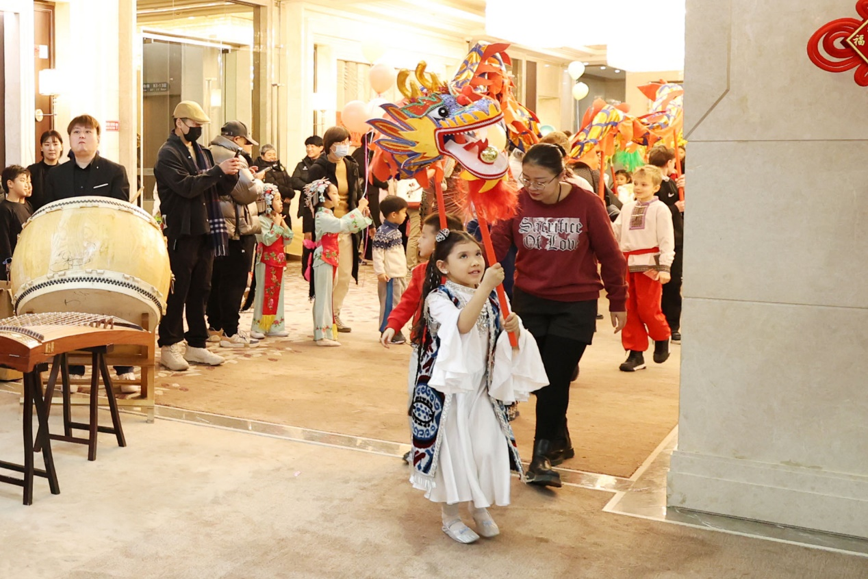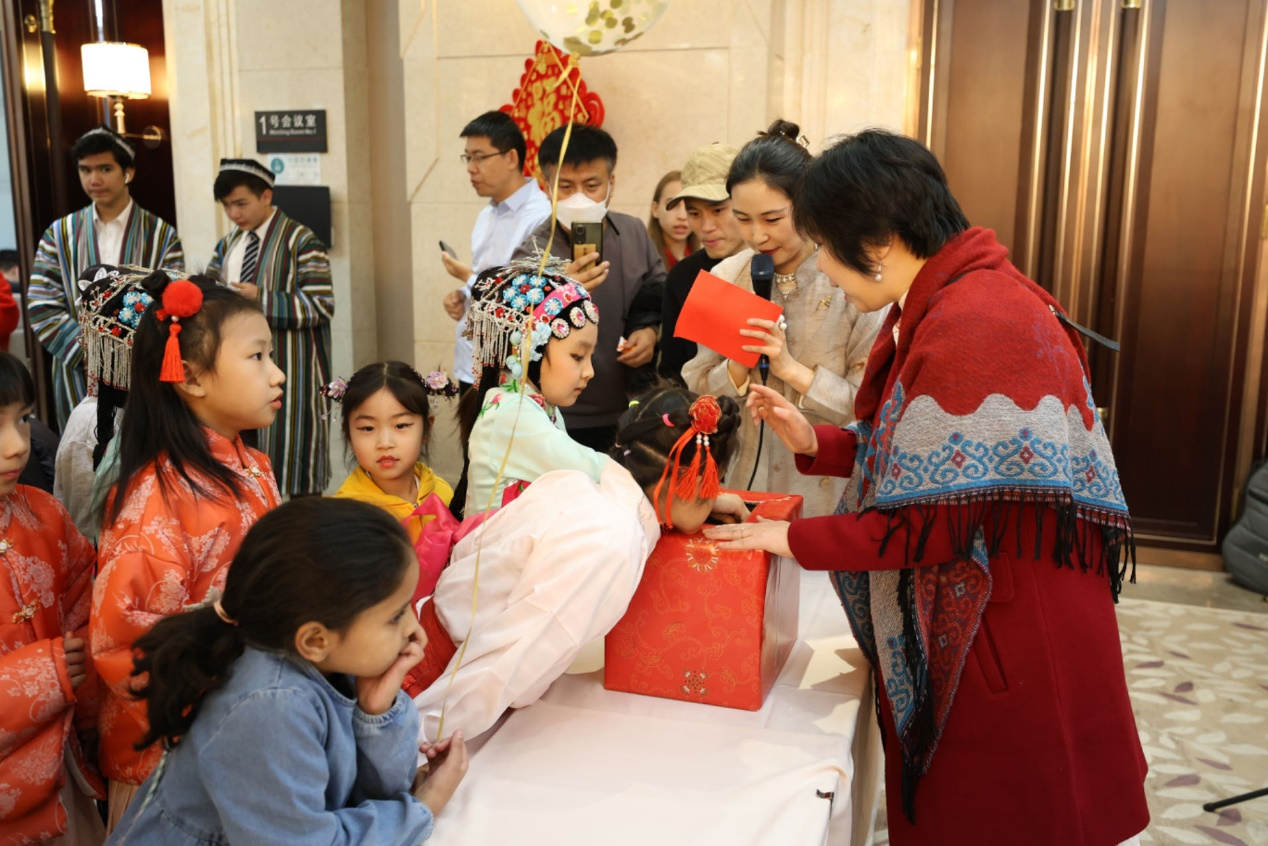 组委会为本场活动精心编排了类型丰富的节目,俄罗斯儿童舞蹈《勺子音乐》、乌兹别克斯坦男孩舞蹈和女孩舞蹈、刚果少年演唱中国诗词《古朗月行》、日本儿童舞蹈《群青》等外国少年儿童演出,展示出了令人陶醉的异域风情;7个国家驻华留学生代表还向大家奉上新春问候。